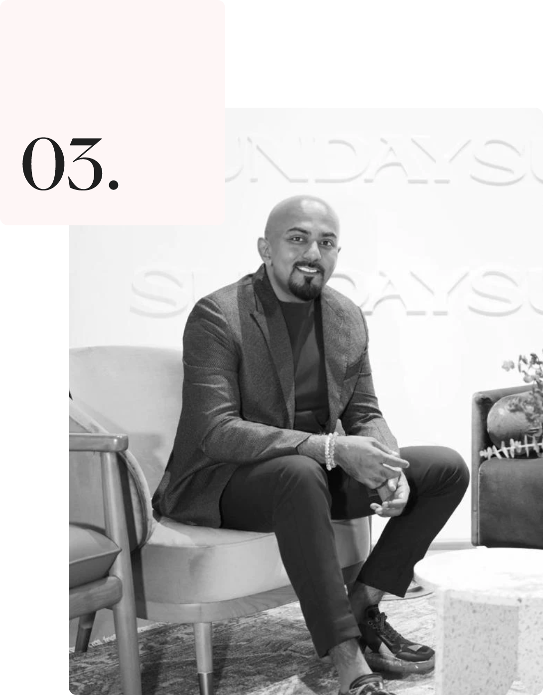 Gautam aspires to give India a world class luxury lifestyle experience with Sunday. His goal is to make the pleasures of beautifully designed furnishings and home decor more cost-effective and accessible to a larger group of people, without losing soul, or compromising on quality. The brand is for those who, like Gautam, know how to live life with joy. A peoples person through and through, Gautam enjoys travelling, wine and sports. To him, Sundays are best when they’re spent with friends and family.