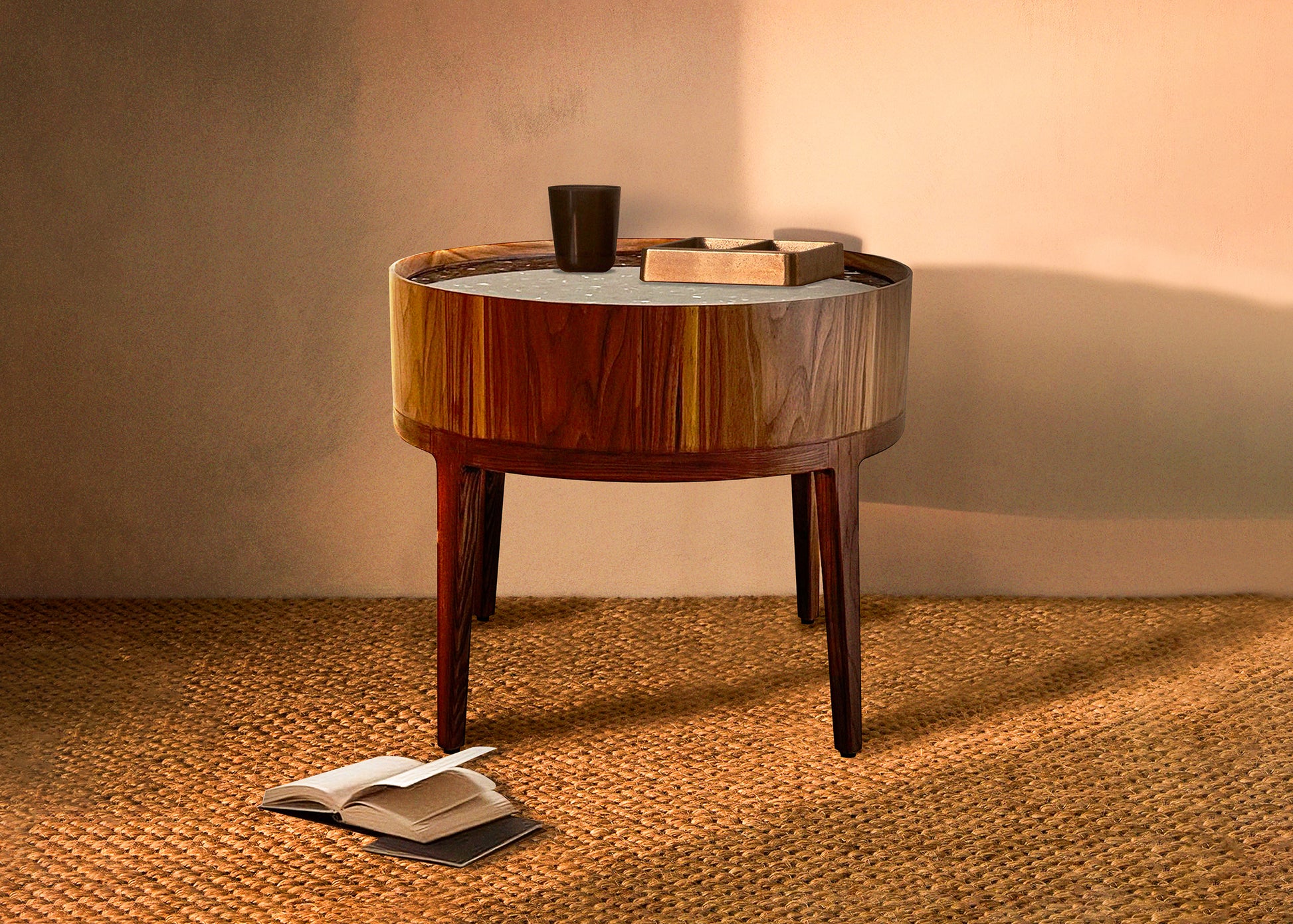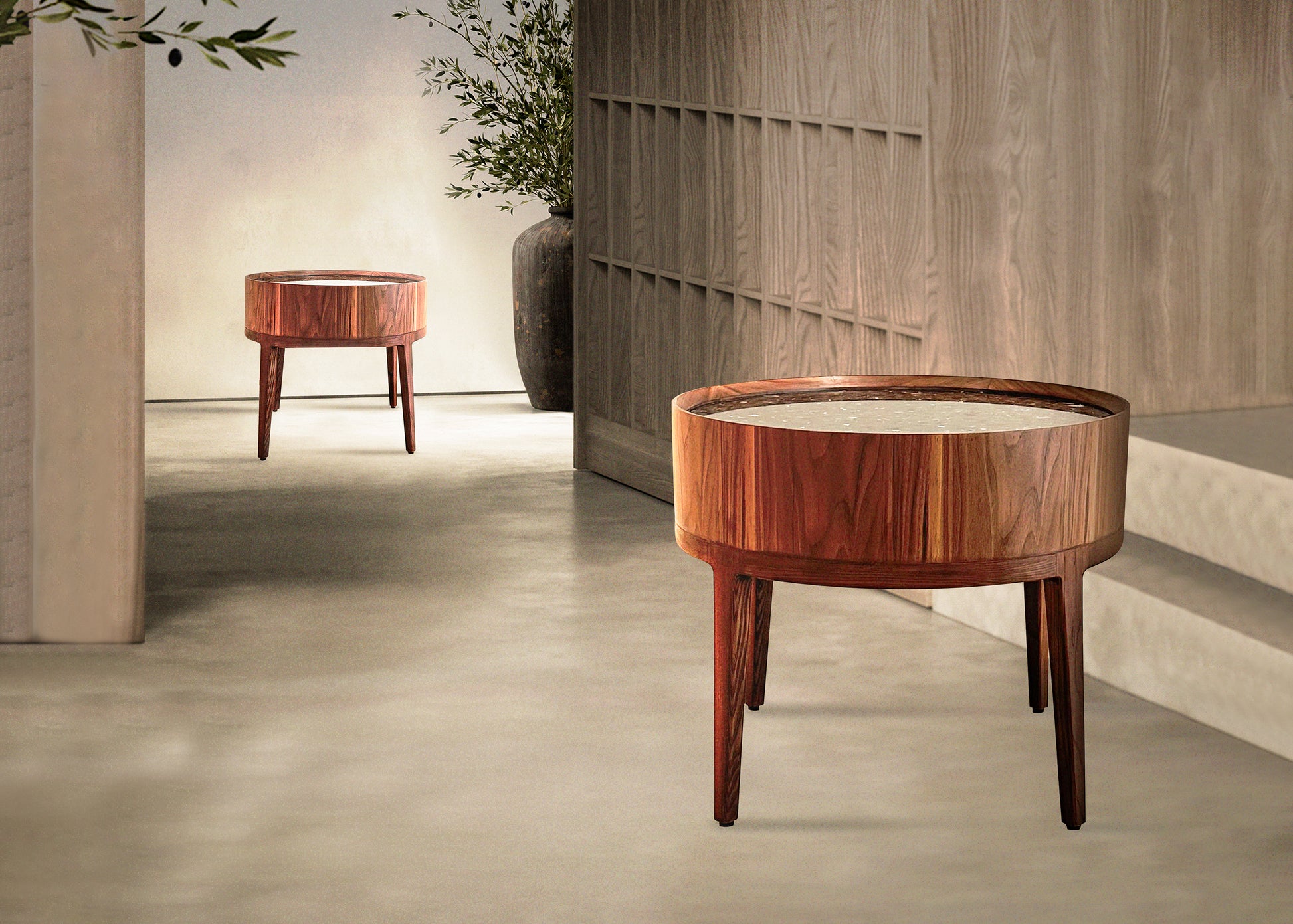 The Aida Night Table is available in the version with and without drawer, the individual models are distinguished by the solid wood structure and the slender and elegant legs, where the bevelled joints between the elements underline the care and artisanal assembly.