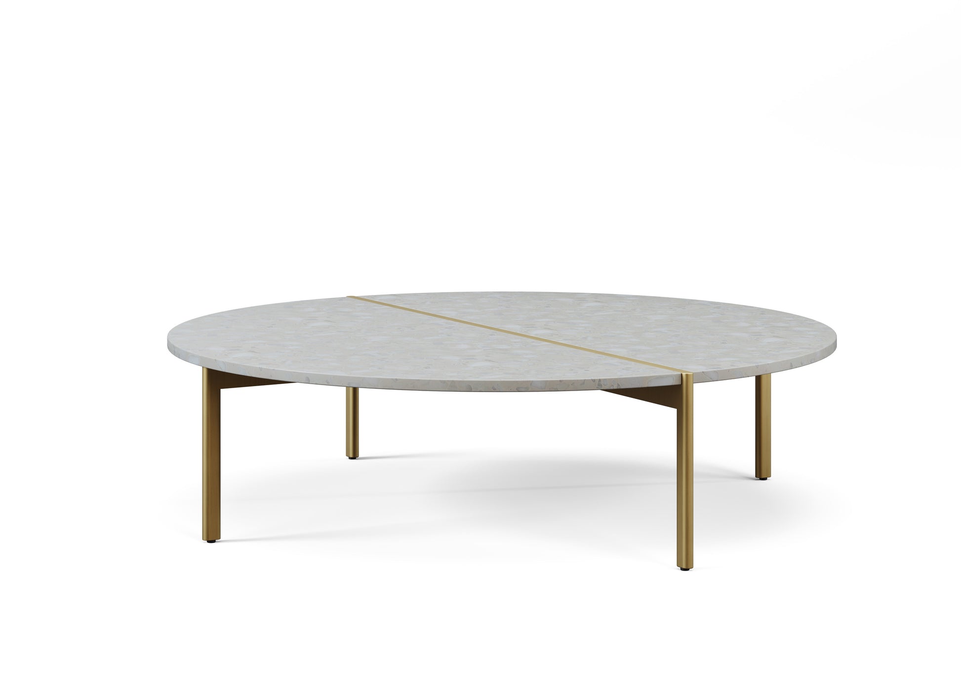 As bold as modern coffee tables get, the Bowie is anything but shy. This daring piece bares it all with its most telling detail – the exposed antique bronze powder base that remains gloriously visible right through the centre of the circular stone top. A seductive piece designed for the similarly bold-minded.