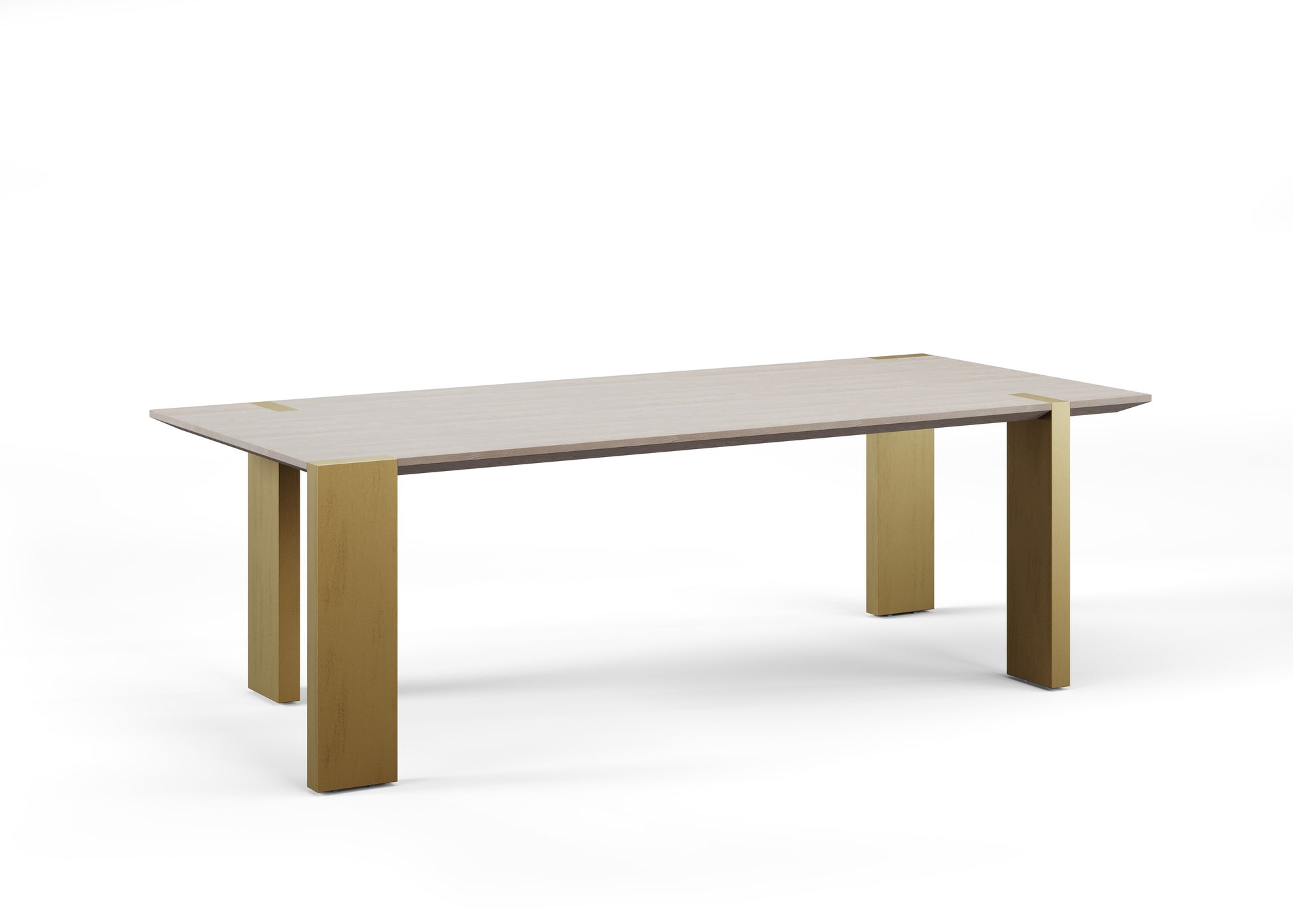 Crafted from a delightful combination of wood and metal, the Harper Dining Table brings an artistic playfulness to the dining room. Its organic materials blend beautifully with its clean lines and sleek, anodized legs, punctuating the strong, solid design with the eloquent expressivity integral to luxury dining. An exquisite ash crown veneer puts the finishing touches on this truly modern dining table without ever being sterile.