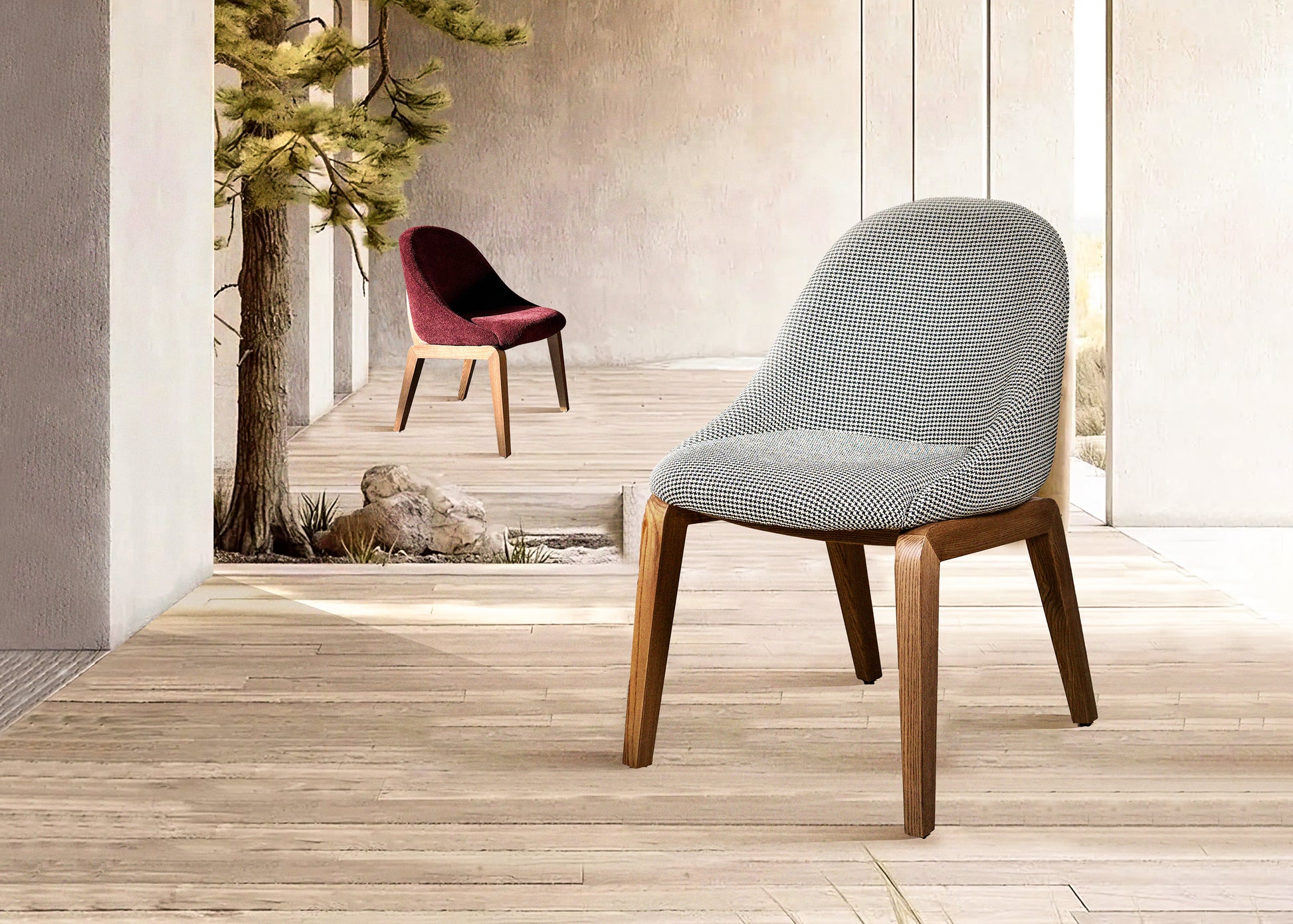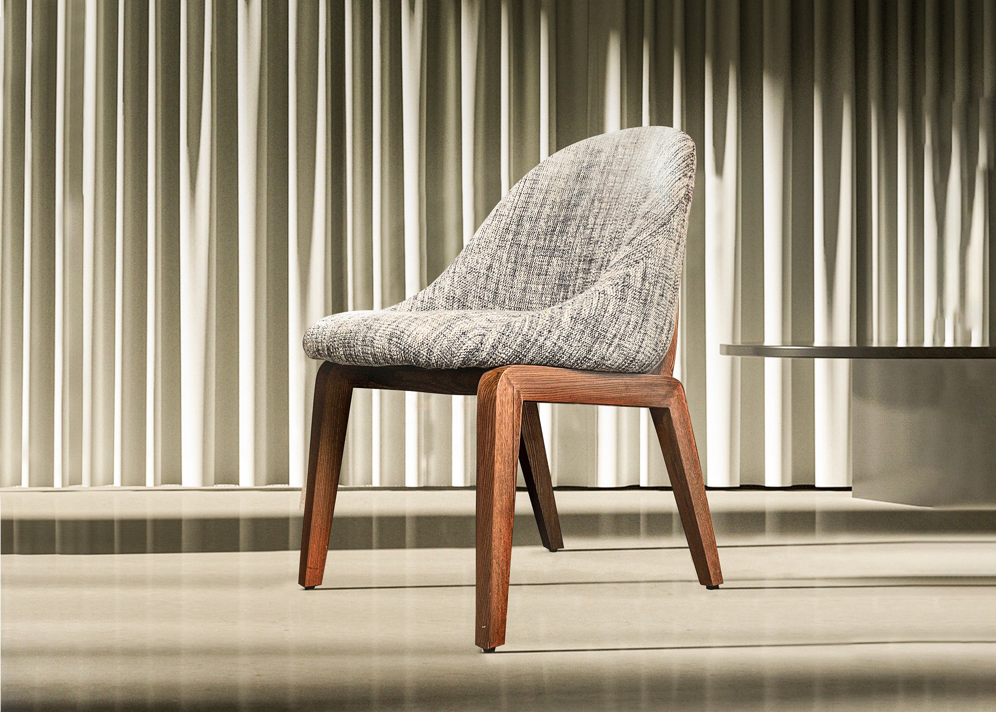 The Lucas Dining Chair, expresses a perfect harmony between comfort and elegance, it was designed to integrate in with style in any type of environment, from the welcoming and refined one of the homes, to the more informal one of offices and hospitality places, also due to its armchair shape.