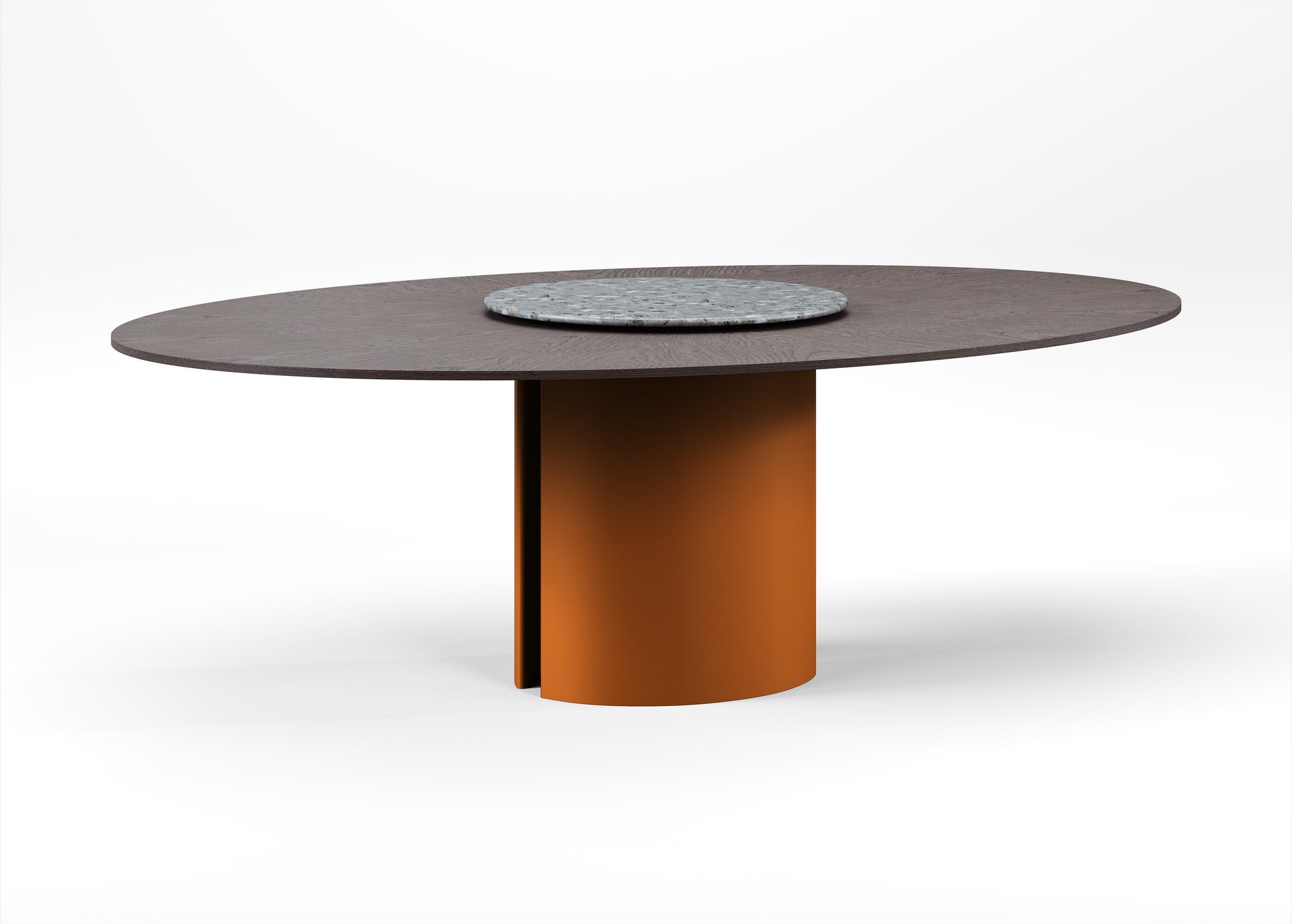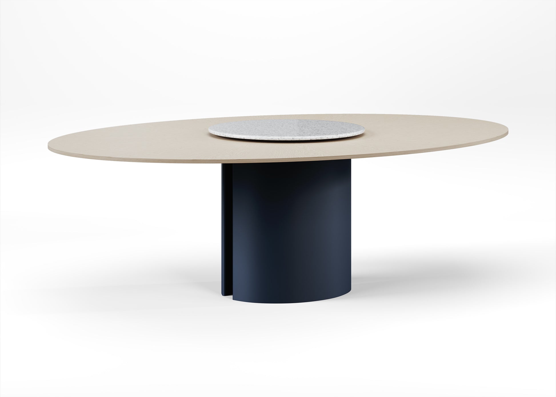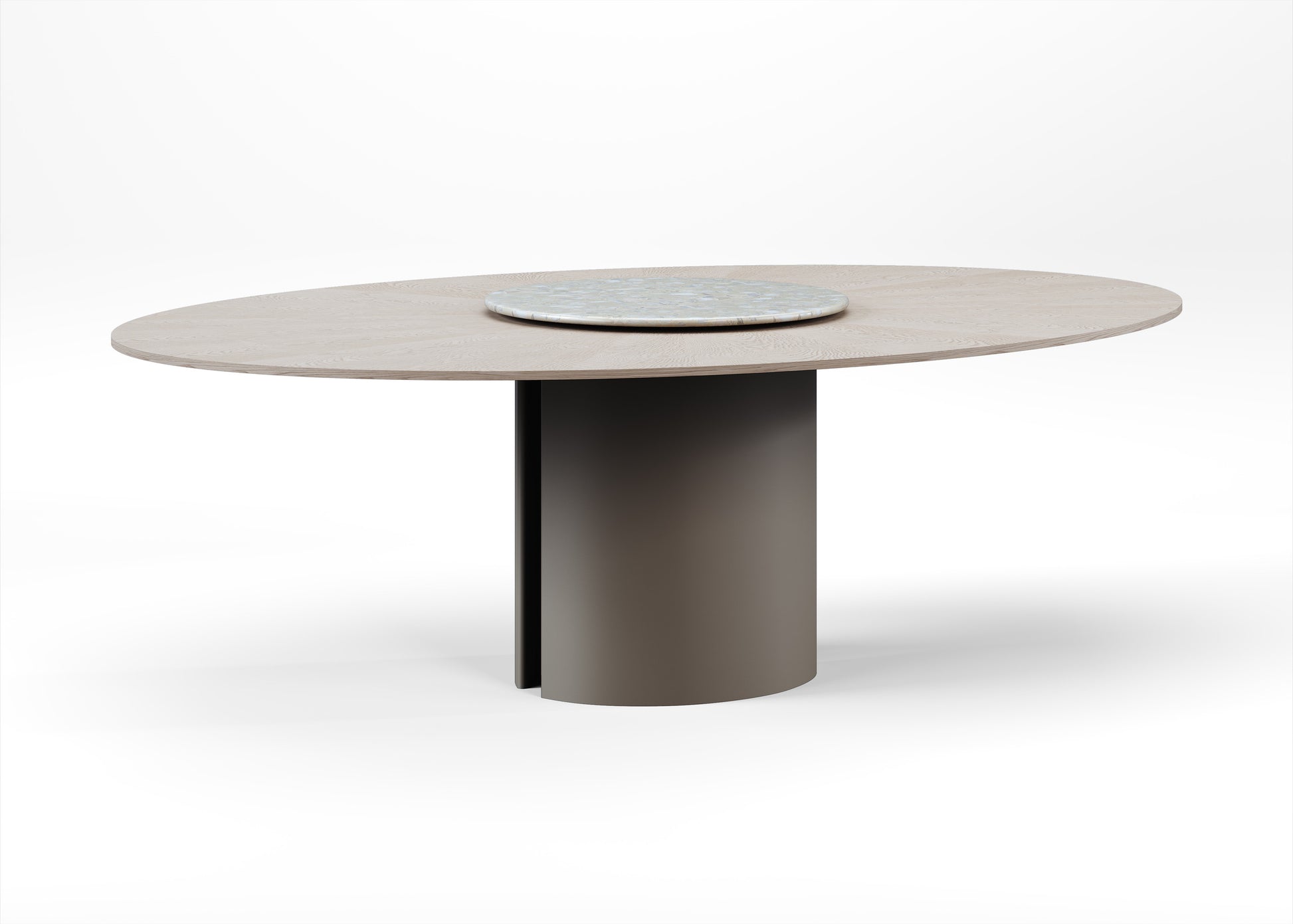 The Sparks Dining Table is a sculptural piece made to impress, and brings a certain grandeur and gravitas to the dining room. The gorgeous elliptical top is propped up by an exquisite eco-leather base, and glamorously announces itself with a pristine sunburst ash crown veneer. A final flourish comes in the form of a striking stone Lazy Susan which ensures that dinner table conversations stay uninterrupted. This is luxury dining in a nutshell.